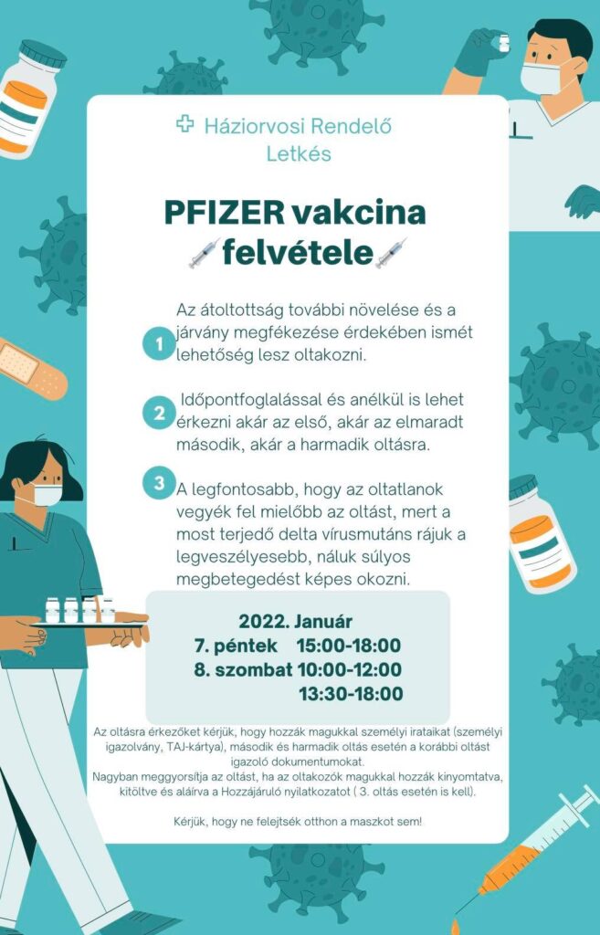 Pfizer oltás felvételére nyílik leghetőség 2022. január 7-én és január 8-án a háziorvosi rendelőben Kezdőlap Hírek