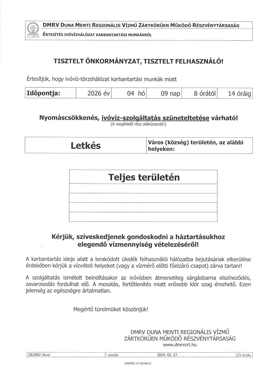 Tájékoztatás – DMRV Zrt.